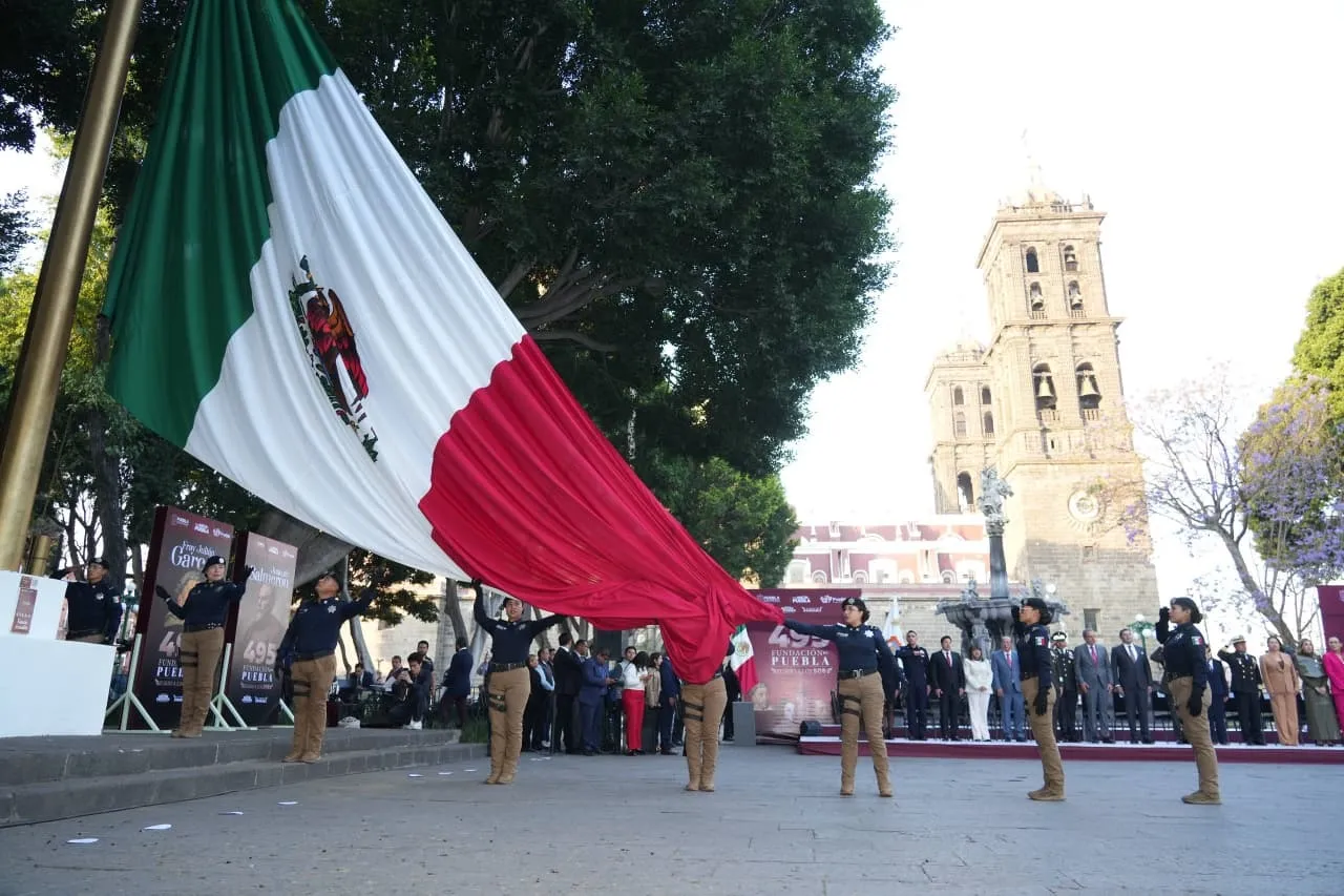 En el marco del 495 aniversario de la fundación de la ciudad de Puebla, el gobernador del estado, Alejandro Armenta, y el presidente municipal, Pepe Chedraui, encabezaron la ceremonia cívica conmemorativa realizada en el Zócalo de la capital.