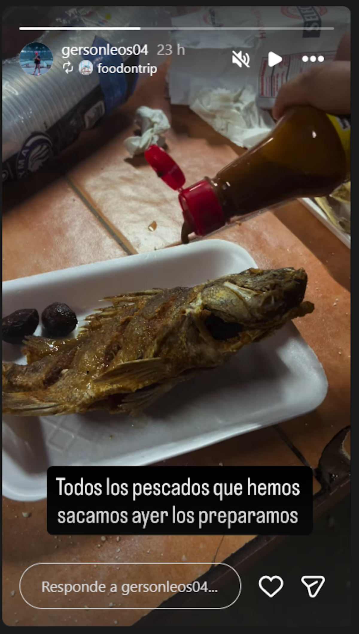 Horas antes de su muerte, Gerson publicó una historia de Instagram donde mostraba que estaba comiendo pescado en un restaurante de Mazatlán.